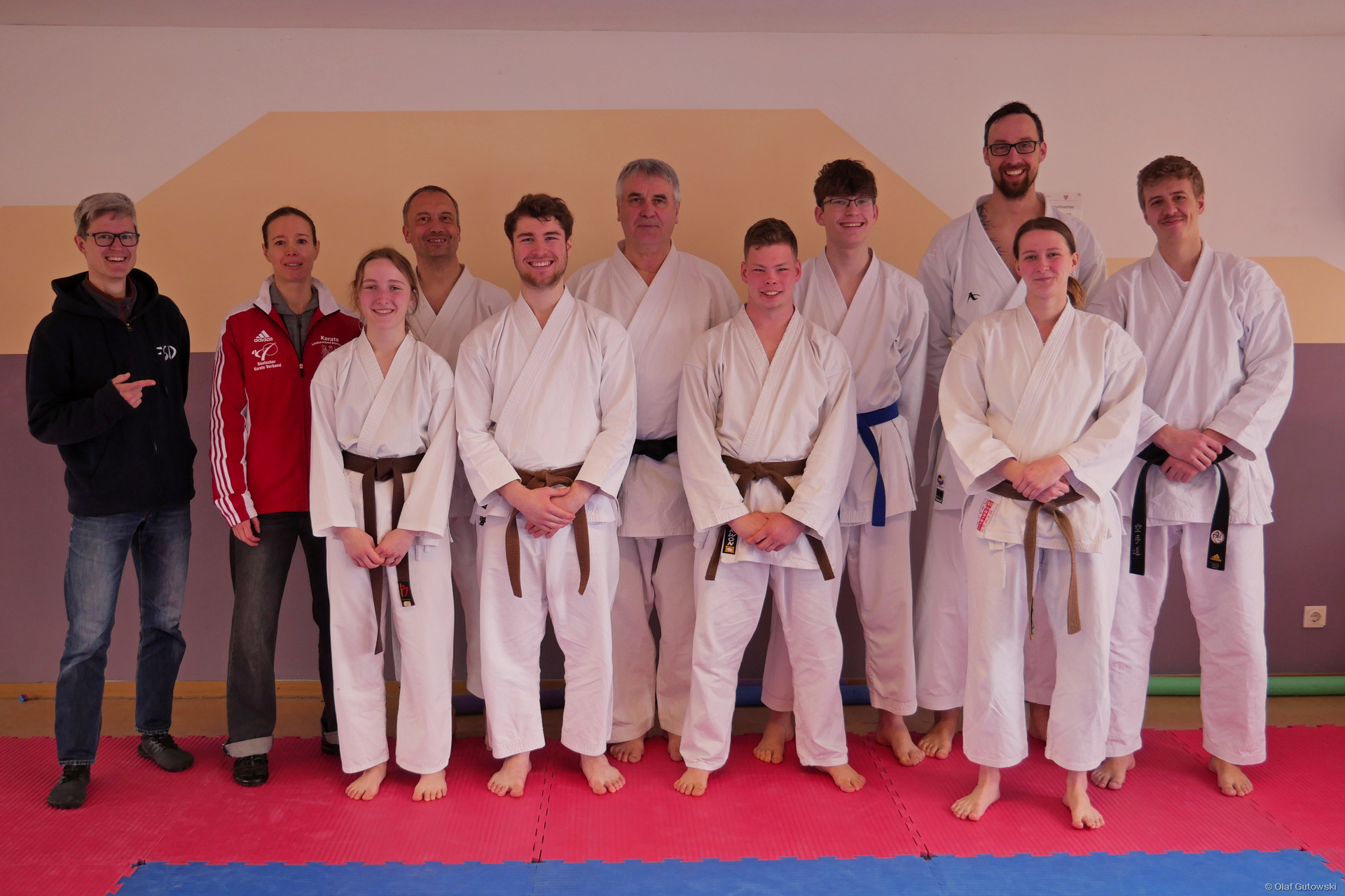 Eine Woche vor Ostern haben im Karate Dachverband Land Brandenburg erneut engagierte Traineranwärterinnen und ‑anwärter den karatespezifischen Teil ihrer Trainerausbildung abgeschlossen. Die neun Absolventen meisterten die Lizenzprüfung, bestehend aus einer Klausurprüfung und praktischen Teil in Form einer Lehrprobe, mit Bravour.