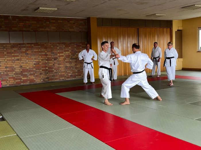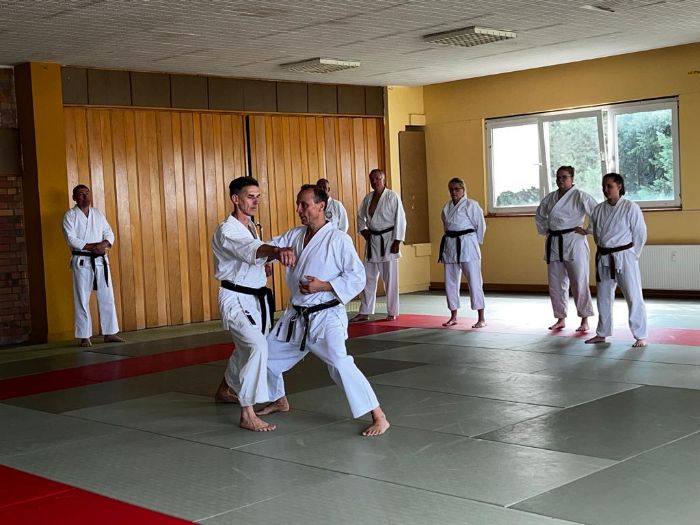 Zum Einstieg in die neue Trainingssaison lud unser Stilrichtungsreferent im Shotokan Stanley Schulze am 26. August 2023 nach Lübbenau zum Lehrgang ein. Ca. 30 Karateka aus 15 Vereinen trainierten bei Thomas Wagner (6. Dan Shotokan DKV), Uwe Waskow (6. Dan Shotokan DKV) und Stanley Schulze (5. Dan Shotokan DKV), und zwar unterteilt in drei Gruppen in den angebotenen vier Trainingseinheiten je Gruppe.
