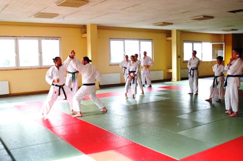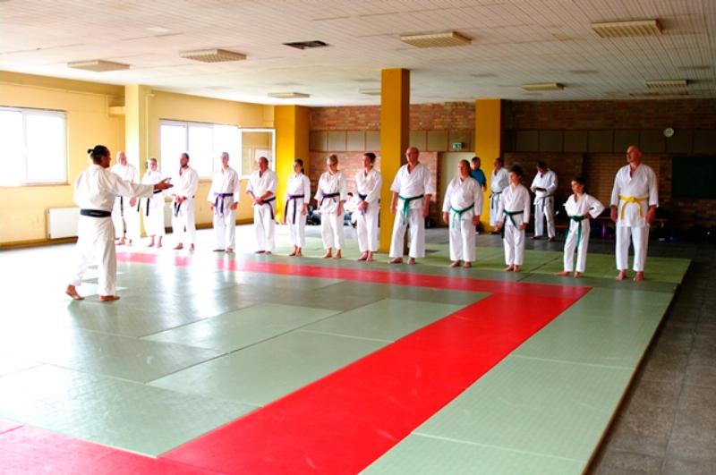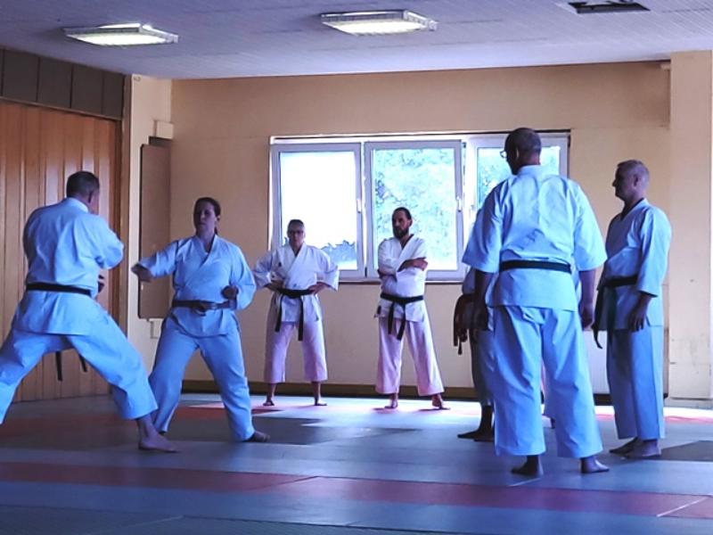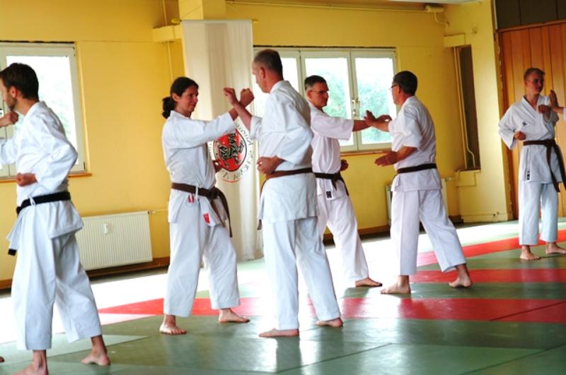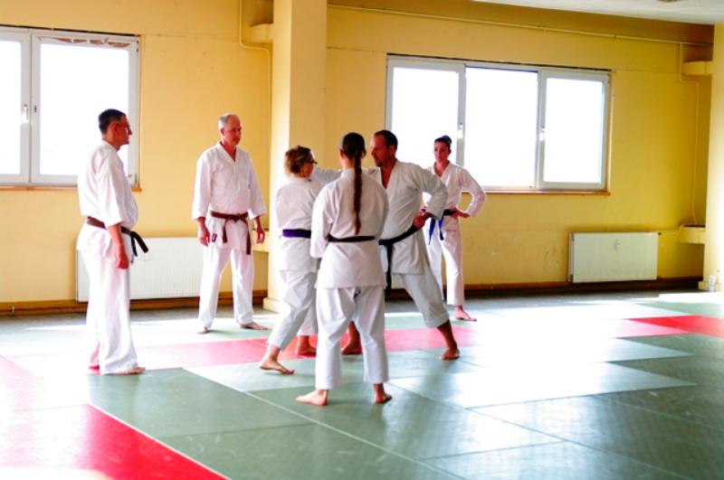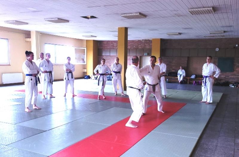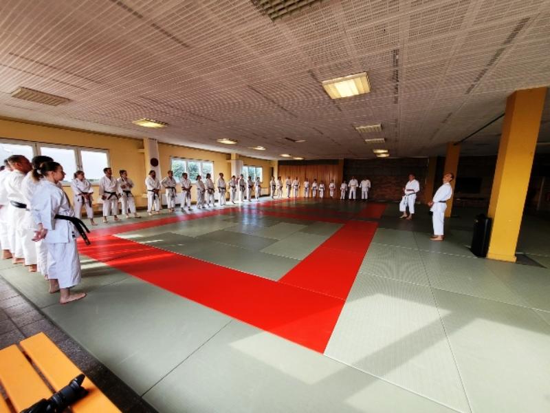 Ca. 35 Karateka aus 12 Vereinen trainierten bei Thomas Wagner (7. Dan Shotokan DKV) die Kata Suparinpei in der Shotokan-Variante sowie offene Handtechniken, bei Uwe Waskow (6. Dan Shotokan DKV) Heian Yondan, Kaeshi-Ippon-Kumite sowie das Kihon in der Dan-Prüfung und bei Stanley Schulze (5. Dan Shotokan DKV) den Einschrittkampf sowie Kata-Kumite aus der Bassai-Dai. Vielen Dank an alle Teilnehmenden für euren tollen Einsatz im Training und an den ausrichtenden Verein KV Lausitz mit seinem Vorsitzenden André Wobith und allen seinen fleißigen Helfern.