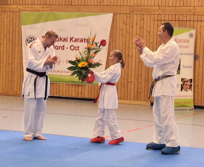 Noah Bitsch ist 2021 als Olympiateilnehmer in Tokio für Deutschland gestartet und trainiert zurzeit den Bundesjugendkader im Kumite. Aus den vier schweißtreibenden Trainingseinheiten konnten die Lehrgangsteilnehmer viele interessante Hinweise mitnehmen. Auch hatten die Teilnehmer in den Pausen die Möglichkeit, viel Wissenswertes aus dem Leben von Noah Bitsch erfahren. Noah zählte zu den weltbesten Karatekas 2021. Mit großem Applaus wurde der Lehrgang beendet.