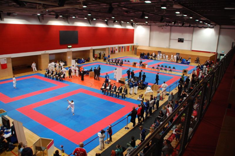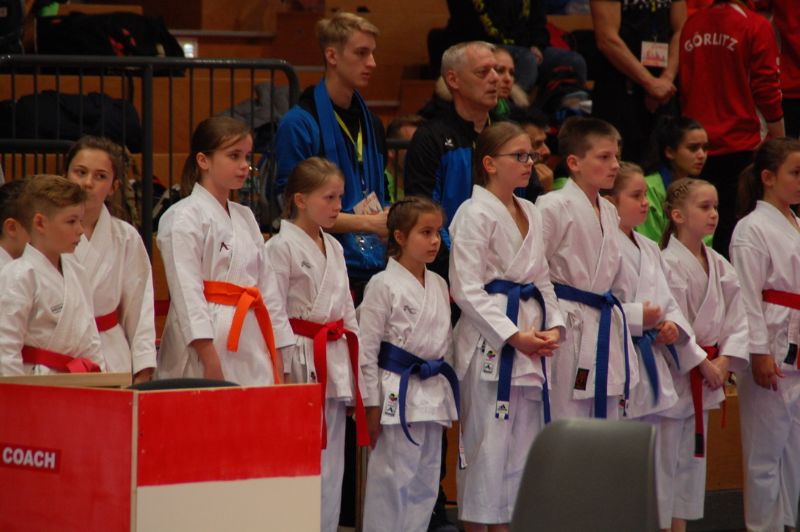 Vieles war neu und ungewohnt bei diesem Turnier, natürlich – anderes Land andere Regeln. Aus 18 Nationen waren ungefähr 1000 Teilnehmer angereist. Dieses Turnier dauerte zwei Tage. Am Samstag startete als erstes Matilda in einer höheren Altersgruppe (13- 14 Jahre). Leider schied Sie bereits in der Vorrunde aus. Dennoch gingen Max, Matilda und Marlene am Sonntag hoch motiviert in die Halle. Dort wurden Sie wieder mit einer neuen kleinen Regel überrascht. Wettkampteilnehmer bis 13 Jahre kämpften immer nebeneinander und gleichzeitig auf einer Matte. Nach kurzer Orientierung trat Marlene in ihrer Altersgruppe an und schlug sich hervorragend. Dies wurde mit einem 7. Platz belohnt. Als nächstes war Matilda an der Reihe. Sie war sehr nervös, im Gegensatz zu Samstag. Leider spielte sich dies auch in ihren Katas wider. Dennoch erkämpfte sie den 9. Platz in ihrer Altersklasse.