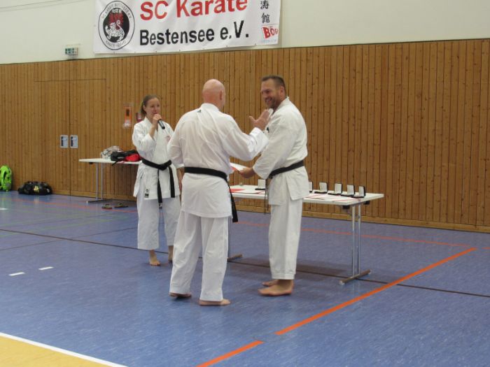 Wie so oft war auch in diesem Jahr unser Verbandslehrgang ein wichtiges Highlight im KDB-Kalender. Und das mit einem Teilnehmerrekord, denn etwas über 160 Karateka kamen nach Bestensee in die Landkostarena. Die Ausrichtung des Lehrgangs lag bei den Helfern des Vereins SC Karate Bestensee in besten Händen. Für das leibliche Rundum-Sorglos-Paket sorgten einige Eltern der Vereinskinder und weitere Mitglieder mit einem wie immer prall gefüllten Verpflegungsstand. Unser Dank geht an Chef-Organisator Wolf Strauß und allen Helfern für die sehr gelungene Ausrichtung.