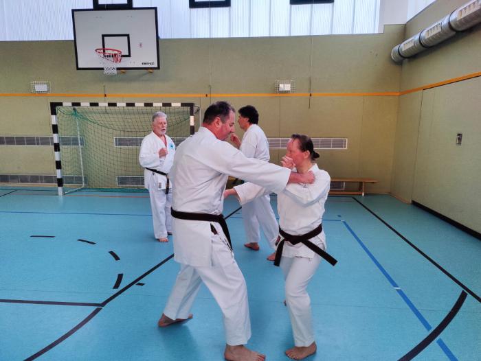 Am 03.03.2024 haben sich fast 20 Karateka von 16:00 Uhr bis 18:00 Uhr in Dabendorf auf dem Koshinkan-Lehrgang getroffen und haben intensiv miteinander trainiert. Proft Sensei, Koshinkan-Instructor in Brandenburg, lehrte das Thema „Sen no Sen“ in den Bereichen Kihon, Kata, Bunkai, Kumite und Selbstverteidigung. Die Trainingsformen waren logisch aufeinander abgestimmt, sodass alle Teilnehmer von 6 Jahren bis 68 Jahren folgen konnten und sich optimal verbessern konnten. Durchgeschwitzt und mit viel Input konnten alle Teilnehmer glücklich nach Hause fahren.