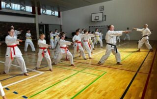 Über 50 Teilnehmer nahmen an den Trainingseinheiten teil, die von Züllich Sensei (Kihon, spezielle Kata-Formen, Kata no Bo, Goshin, Sportabzeichen und Prüfungsvorbereitung), Proft Sensei (SV-Techniken für Kinder, Koshikan-Formen für SV), Zehbe Sensei (Sonoba-Katas, Bo- und Tonfa-Anwendungen) sowie dem Überraschungsgast Kurtzweg Sensei aus Berlin geleitet wurden. Kurtzweg Sensei widmete sich dabei dem Thema der SV-Aktion und -Reaktion mit Koshikan-Formen.