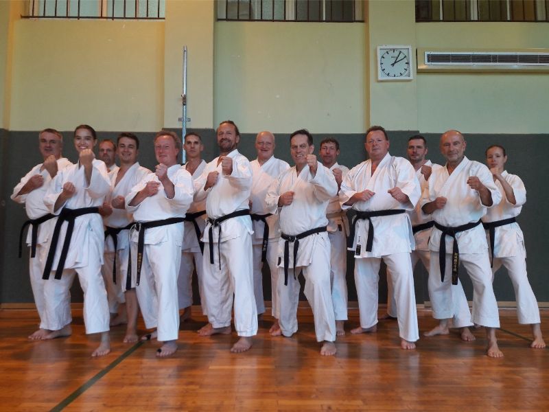 Einmal trainieren nur unter Schwarzgurten. Mit diesem Ansinnen fanden sich die karatebegeisterten Shotokaner des KDB e. V. am 21.09.2019 in Eisenhüttenstadt ein, um sich unter der Leitung von Uwe Waskow, 6. Dan und Karatelehrer, die Kata Gojushiho-Sho mal von allen Seiten ausführlich beleuchten zu lassen.