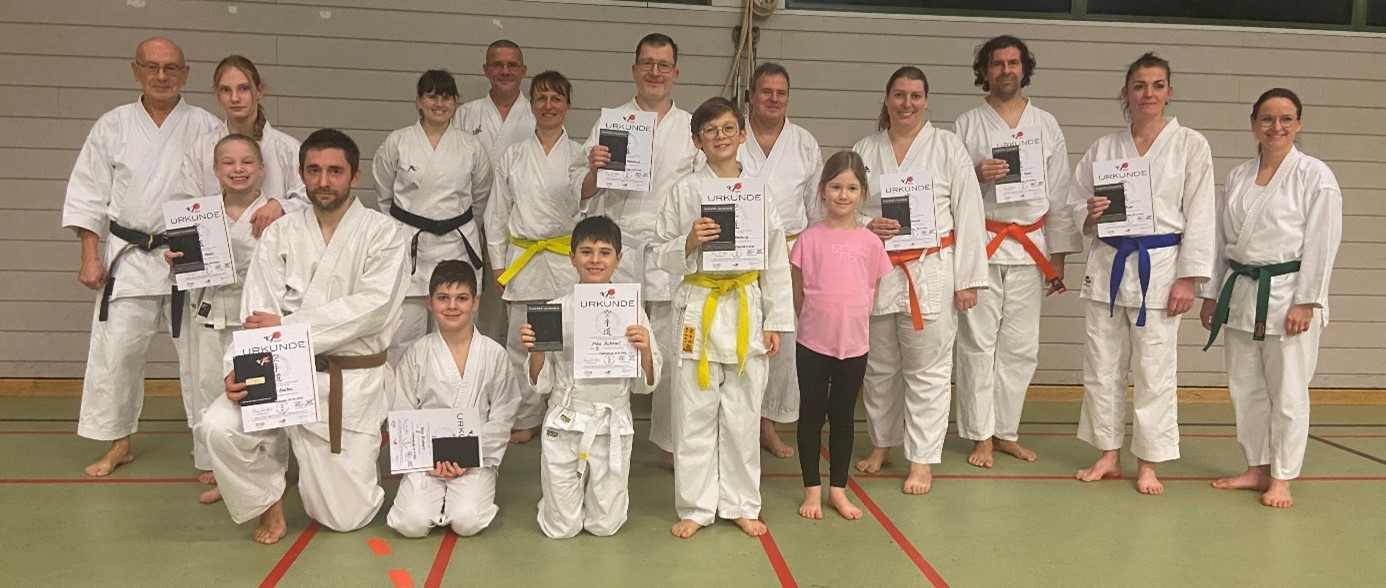 Und wieder geht ein Jahr viel zu schnell zu Ende, (so wie das Training auch immer). Turnusgemäß führten wir am 03.12.24 unsere Kyu-Prüfungen durch. Sicherlich haben alle Bushidos bemerkt, dass die Erwartungen der Trainer und Prüfer gestiegen sind. Die Zulassung zur Prüfung erfolgte auf der Grundlage der im Training gezeigten Leistungen und Einstellung. Neun Prüflinge absolvierten erfolgreich ihr Prüfungsprogramm und erwarben den nächst höheren Kyu-Grad. Herzlichen Glückwunsch!