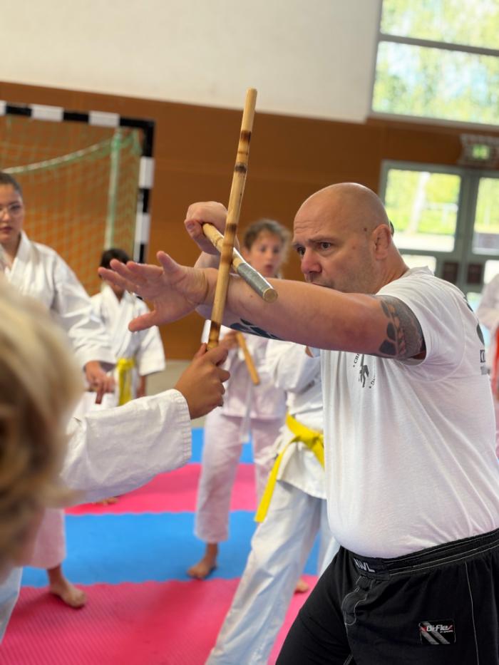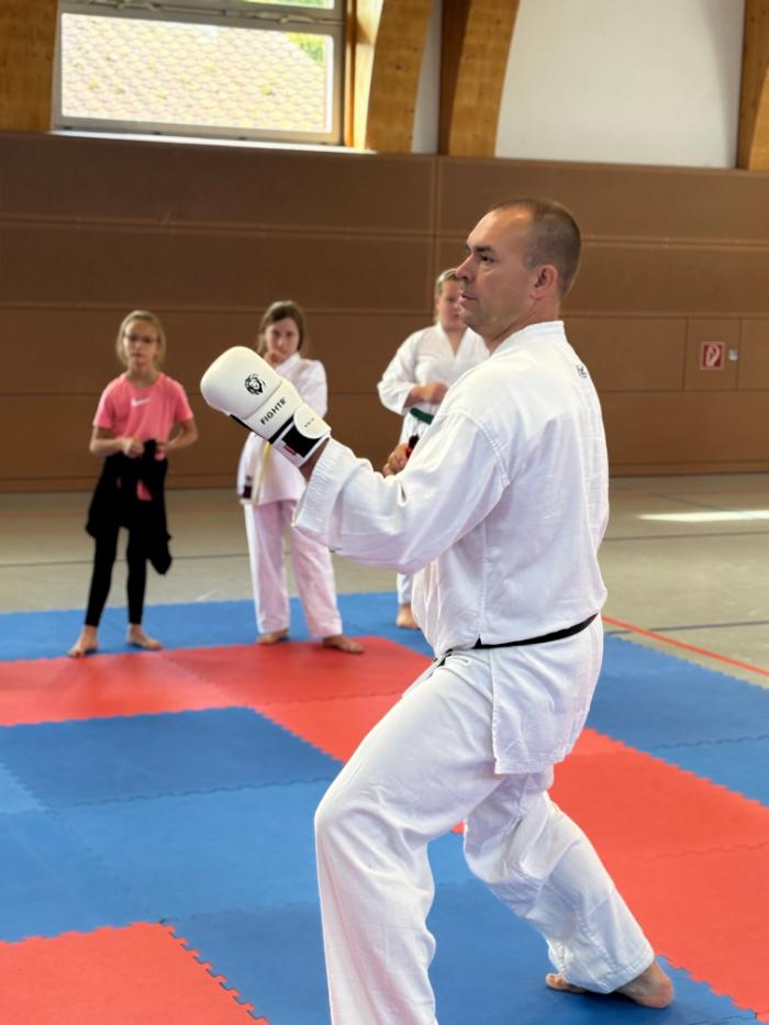 Jeden Tag standen drei Trainingseinheiten auf dem Programm, die ganz klassisch mit Kihon, Kumite und Kata das Fundament des Karate stärkten. Darüber hinaus konnten die Kinder auch in andere spannende Bereiche hineinschnuppern: Stockkampf sowie Bodenkampf erweiterten den Horizont und zeigten, wie vielseitig Karate sein kann. So kamen sowohl Anfänger als auch Fortgeschrittene voll auf ihre Kosten. Gemeinschaft, Spaß und Abkühlung Trotz des fordernden Trainings war für jede Menge Spaß gesorgt. Spiele, Musik und gemeinsame Aktivitäten sorgten für eine tolle Stimmung und ein starkes Gemeinschaftsgefühl. Ein besonderes Highlight war unser Grillabend – mit Kinder-Musik, leckerem Essen und viel guter Laune. Natürlich durfte auch die Abkühlung nicht fehlen: Beim gemeinsamen Badetag konnten die Kinder ausgelassen im Wasser toben, schwimmen und neue Energie tanken. Das sorgte für strahlende Gesichter und jede Menge Gelächter.
