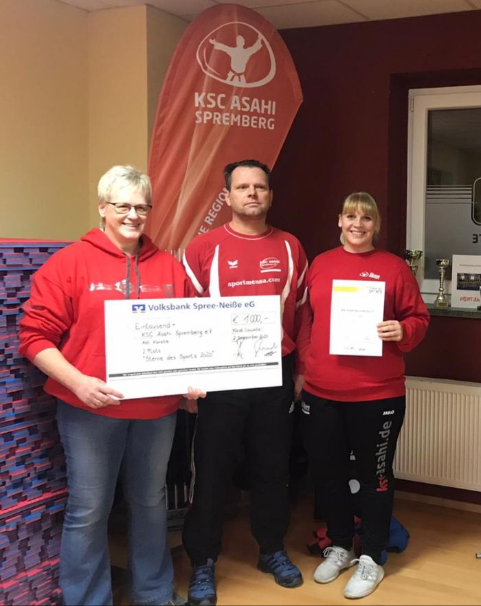 Mit dem deutsch – polnischen Engagement bewarb sich der KSC Asahi Spremberg e.V. Abteilung Karate bei den dies jährigen Sterne des Sports 2020 und konnte einen fantastischen 2. Platz auf kommunaler Ebene erreichen. Die Volksbank Spree- Neiße eG würdigte dieses großartige Engagement. Der Geldpreis in Höhe von 1000,- € wird vollständig unseren Mitgliedern zu Gute kommen. Diesen fantastischen Erfolg erreichten wir gemeinsam mit unserem wunderbaren Team und unseren polnischen Sportfreunden